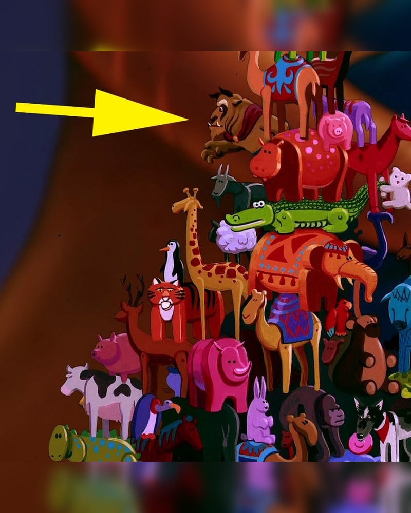 A statue of Disney's Beast can be seen among the Sultan's toys in the film Aladdin - Aladdin Sultan Stacking Animals